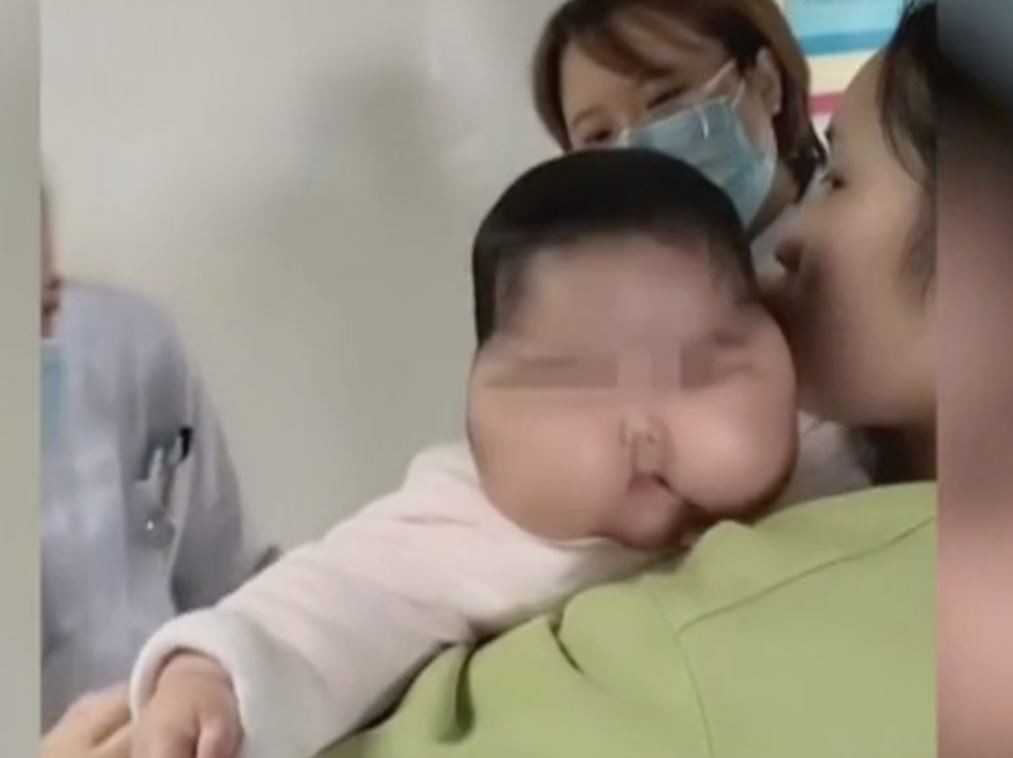 ▲大陸嬰兒護膚品含超量激素,導致嬰兒變成大頭娃。(圖/翻攝 風聞社區@紅豆奶茶大杯)