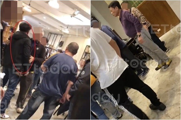 至餐廳外,藍衣男被多人團團圍住,高大成也在一旁。藍衣男被拖至角落後,一名體型壯碩的男子疑用手臂架住他的脖子,藍衣男身旁的白衣女子不斷道歉、哀求男子住手,但男子並不領情。據悉,雙方衝突過程約數十分鐘,除藍衣男遭暴力對待,尚有另一名與其同桌的男子遭罰站、甩巴掌,臉上因此掛彩。