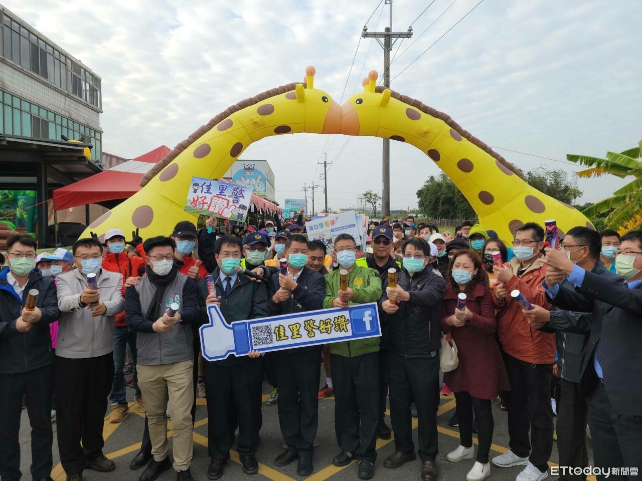 ▲台南市佳里區國王家族羽絨服飾觀光工廠舉行「羽絨狂歡節、漫步生活」嘉年華活動,市長黃偉哲到場參與,佳里分局並派員在場宣導交通。(圖/記者林悅翻攝,下同)