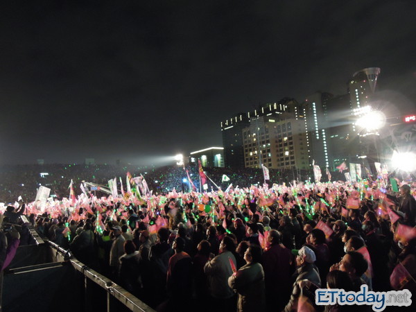 投票前最後一晚,民進黨在新北市板橋舉辦選前之夜,前總統李登輝的現身力挺。剛開完刀的李登輝也意有所指的說,這是他此生最後一次向大家拜託,希望大家用選票選出台灣的希望。而他最後的一句「台灣,交給大家囉」,更讓現場10萬綠營支持者無不動容,很多台上台下的政治人物都忍不住落淚,也將綠營的氣勢帶到最高潮。