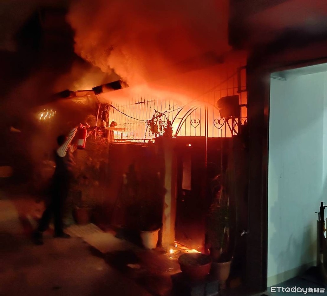 ▲台南市北區北區公園路994巷內民宅晚上發生火警,台南市消防人員全力搶救,並救出受困的1對父女。(圖/記者林悅翻攝,下同)