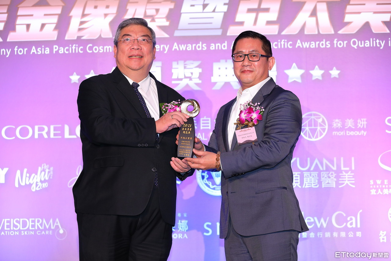 ▲東森直消電商獨賣的「森美妍」2項爆款榮獲「美業奧斯卡」肯定,東森直消電商執行長郭恆志(右)親自出席受獎。(圖/記者湯興漢攝,下同)
