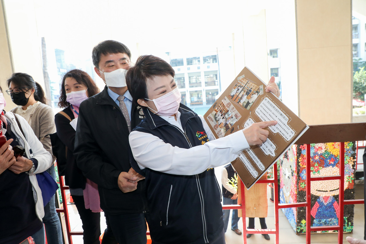 盧秀燕視察完後,校長許耀文拿出一本去年10月二中高一9名學生在老師的帶領下,專訪市長的採訪報告。