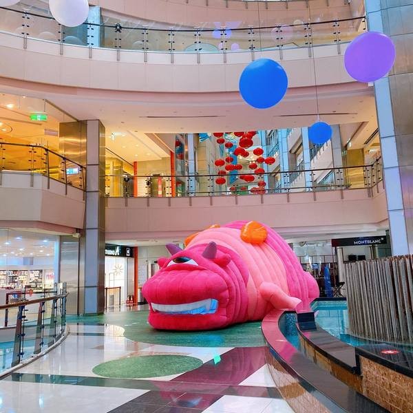 因此,將原本在民間故事裡,除夕夜擾民的年獸,在大江購物中心化身成為桃紅繽紛亮眼、愛美食的吃貨年獸,慵懶地趴在一樓水池旁,讓人聯想到「放假耍廢」的放鬆心情,可愛外型加上呆萌的表情相當討喜,此外全館各處也掛上應景且喜氣洋洋的燈籠及充滿童趣的燈球,吸引不少大小朋友駐足拍照。