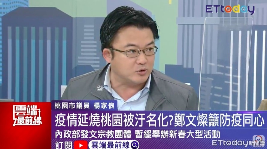 衛福部立桃園醫院爆發群聚感染,9天累積10例,並有部分縣市祭出「避桃禁令」,引發熱議。對此,民進黨桃園市議員楊家俍21日在ETtoday《雲端最前線》節目中坦言,自己覺得還好,但「有些市府同仁是有些心酸啦!」畢竟機場在桃園,當有其他縣市民眾回來,需要協助安置、找隔離旅館,第一時間打到桃市府,市長鄭文燦都一口答應處理,且桃園「就是幫大家扛住這一波壓力」。