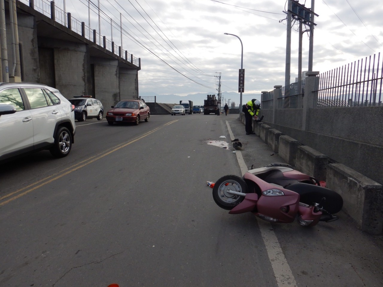 警方表示,今天上午8點13分,67歲的陳姓駕駛開著聯結車,行經霧峰區峰堤路車籠埔抽水站前,突然擦撞到右前方1輛機車,當場並輾壓過去,他嚇得馬上停車觀看,赫見婦人全身是血,倒臥在地,經救護車緊急送往中山附醫,婦人右腳必須截肢。