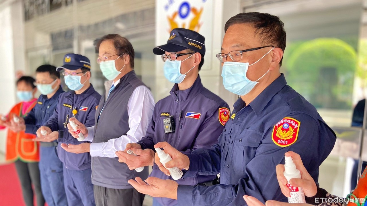▲葉國一贈新北警1萬瓶抗菌乾洗手,警長黃宗仁:同仁執勤兼顧防疫。(圖/新北市警察局提供,下同)
