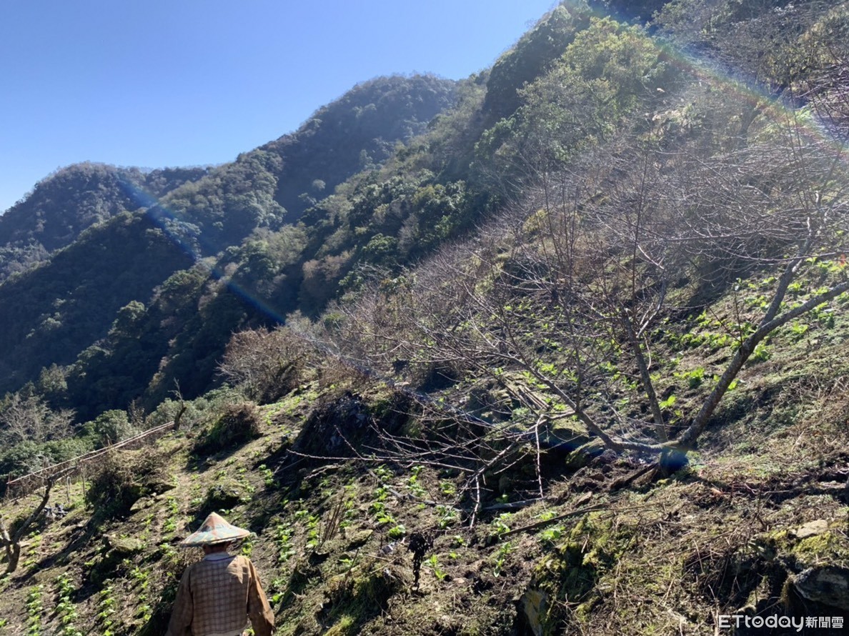 ▲花蓮秀林鄉高山地區因下雪造成部分桃樹植株出現枝條受損、顏色改變等凍害情形。(圖/花蓮縣政府提供,下同)
