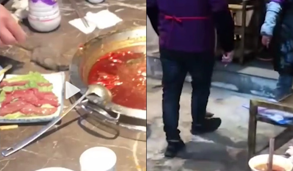 ▲火鍋店掉下老鼠影片在網路上瘋傳。(圖/翻攝自沸點視頻)