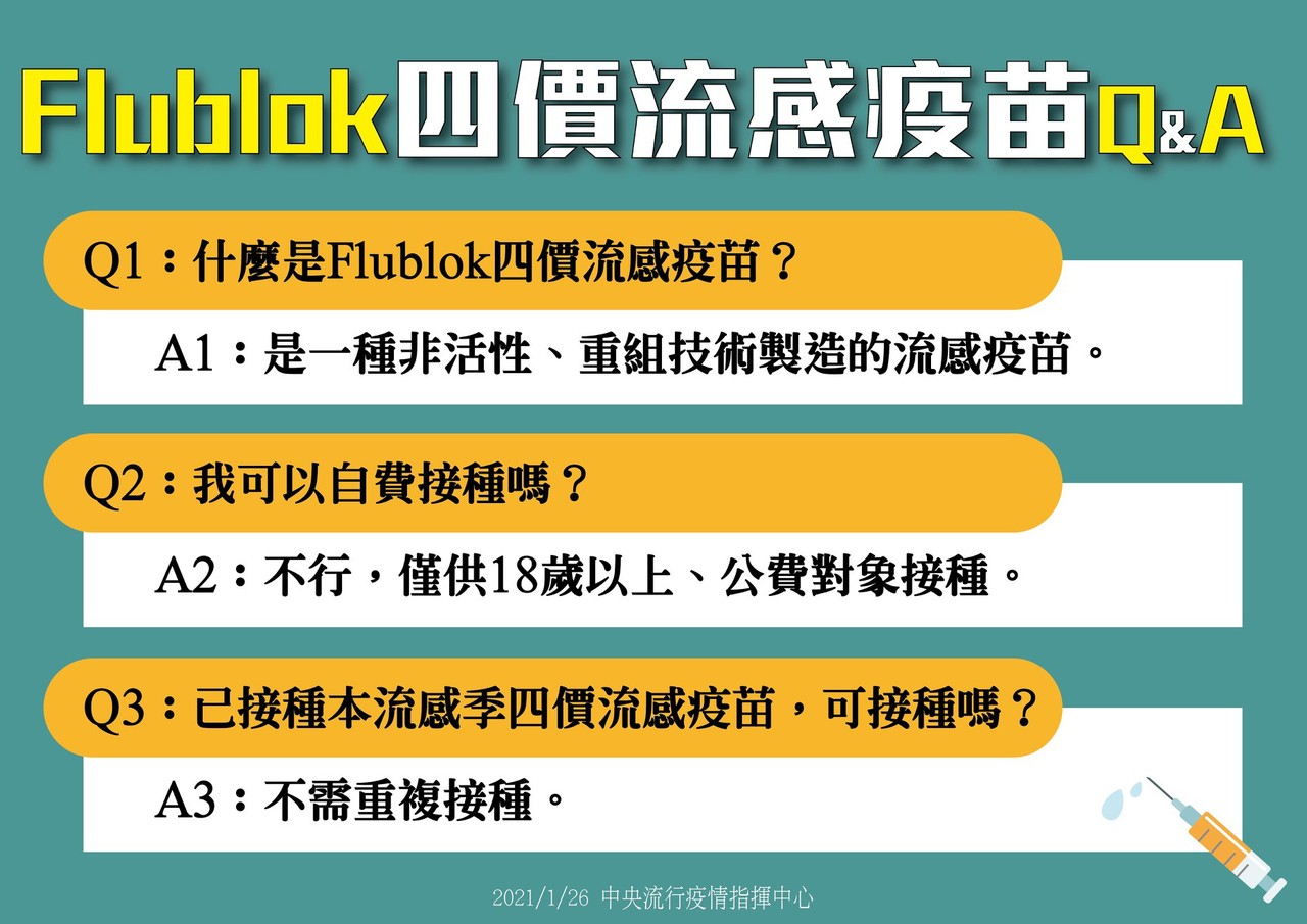 因為今年開打初期民眾接種踴躍,疾管署陸續增購兩批公費流感疫苗,其中有35萬屬於從美國專案進口的賽諾菲Flublok疫苗,1月22日開始提供使用。