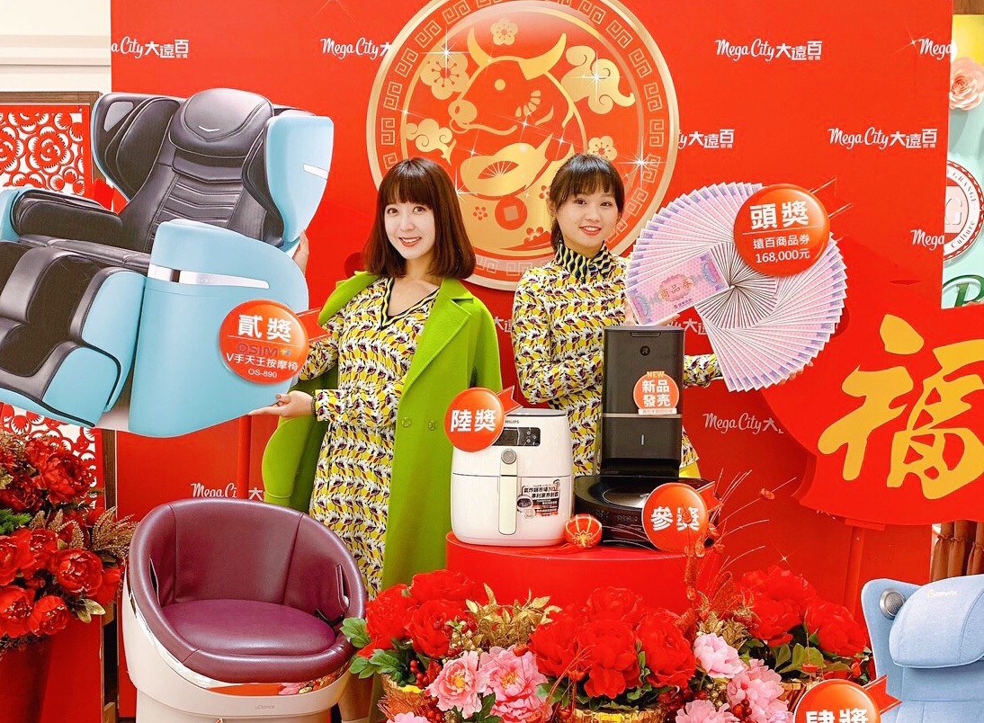 針對今年春節福袋則因防疫,首度全改成預購,大年初一當天也將直播抽獎,讓民眾在家就可對獎,從2/1至2/11日下午六點,持全館當日單筆消費滿888元以上發票,便可用現金2,000元購買「牛轉乾坤好運袋」最大獎為遠百商品券168,000元」、還價值148,800元的OSIM V手天王按摩椅OS-890,以及78,999元的iRobot Roomba S9+掃地機器人,福袋限量2千份。