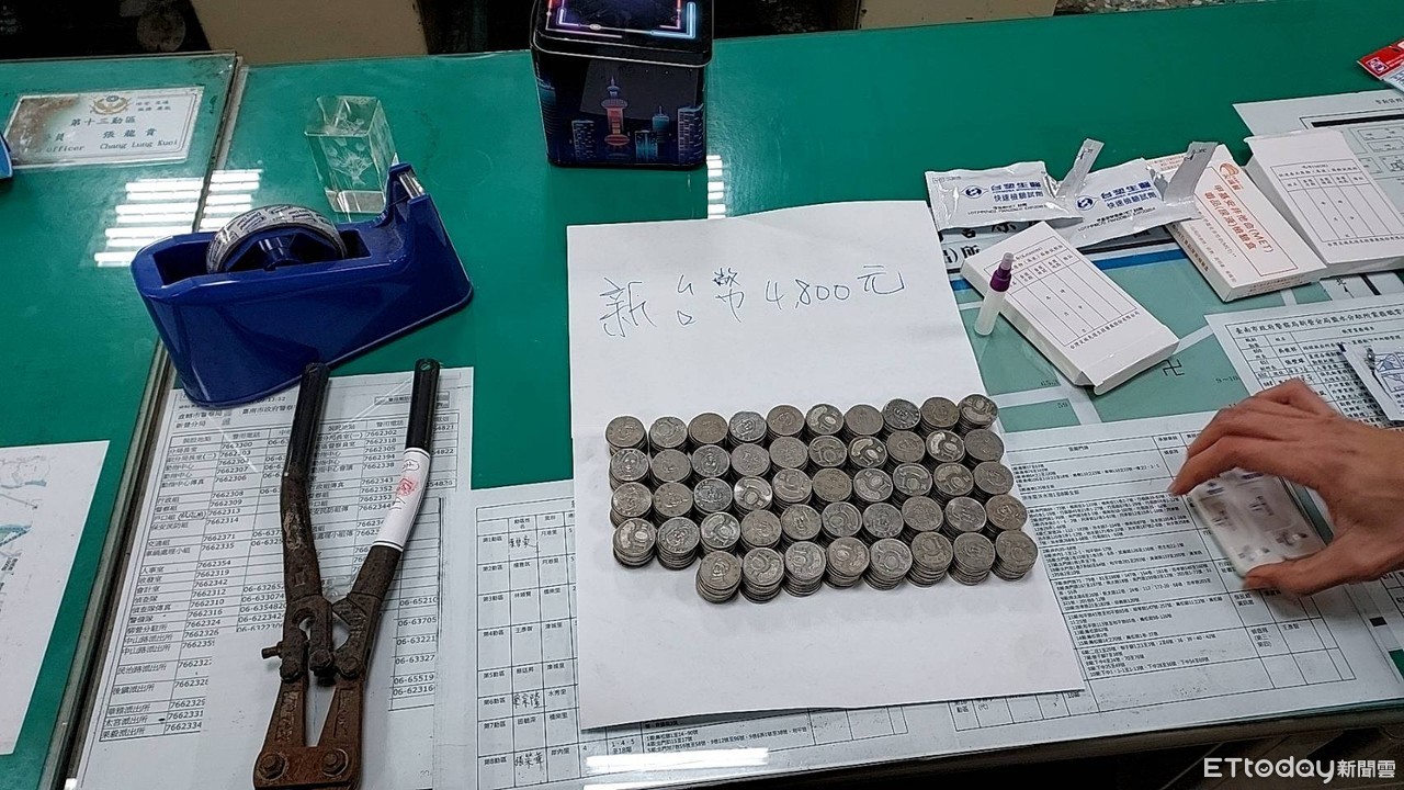 ▲台南市新營分局鹽水派出所據報循線查獲娃娃機竊盜周姓犯嫌,起獲竊盜所得剩餘贓款4800元、空拍機一台及作案工具破壞剪1支等物證。(圖/記者林悅翻攝,下同)