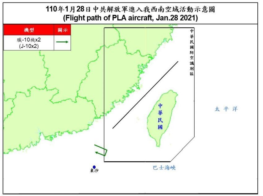 共軍28日共派6架次共機擾台。國防部28日傍晚證實,共軍出動空警500機1架次、運8電偵機1架次,以及殲10機2架次。國防部晚間9點多左右再度證實,共軍今晚再度派遣2架次殲10機進入我西南空域,我軍派遣空中巡邏兵力應對、廣播驅離、防空飛彈追監。