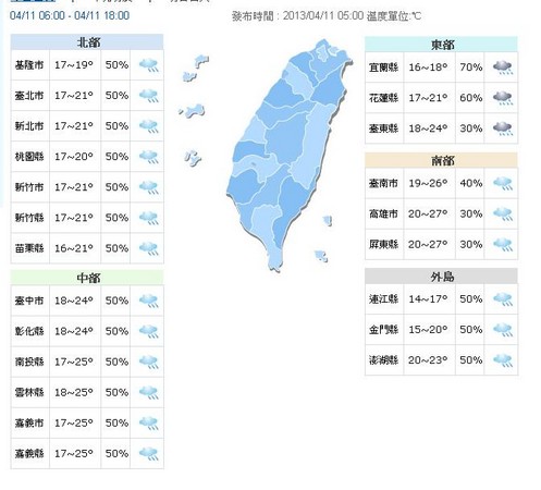 受華南雲雨區及東北季風影響,11、12日兩天北部及東北部天氣較涼,中央氣象局表示,台灣中部以北、東北部地區及澎湖、金門、馬祖有短暫陣雨,並有局部較大雨勢發生的機率,東部、東南部、南部地區有局部短暫陣雨;台灣沿海空曠地區及澎湖、金門、馬祖、蘭嶼、綠島有8到9級強陣風出現。
