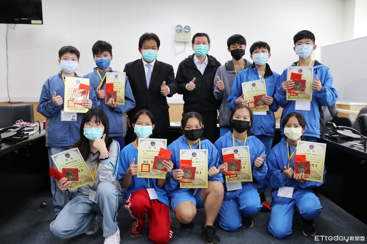 ▲來自台南市安平、建興、後甲、復興、忠孝等國中的學生,在台南市議會進行服務學習結束,郭信良議長親自頒發獎狀表彰學生們認真服務,並贈送紀念品給每位學生。(圖/記者林悅翻攝)