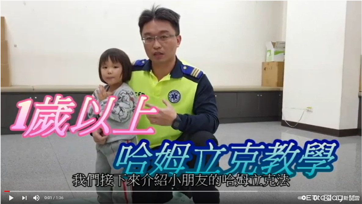 ▲▼消防局此次拍攝的影片由消防局資深教官李均祈負責示範,分別是1歲以上、1歲以下以及成人版哈姆立克教學,為求真實,還找來同仁的2歲女兒擔任模特兒。