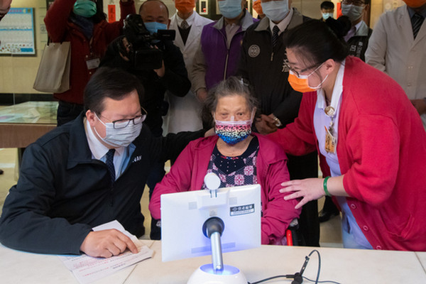 ▲鄭市長陪同84歲的許李秀粉阿嬤與她的女兒視訊。(圖/市府提供)