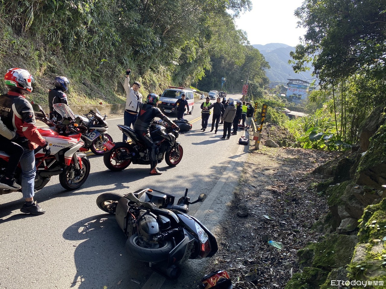 ▲北宜公路4機車追撞 。(圖/記者陳以昇翻攝,下同)
