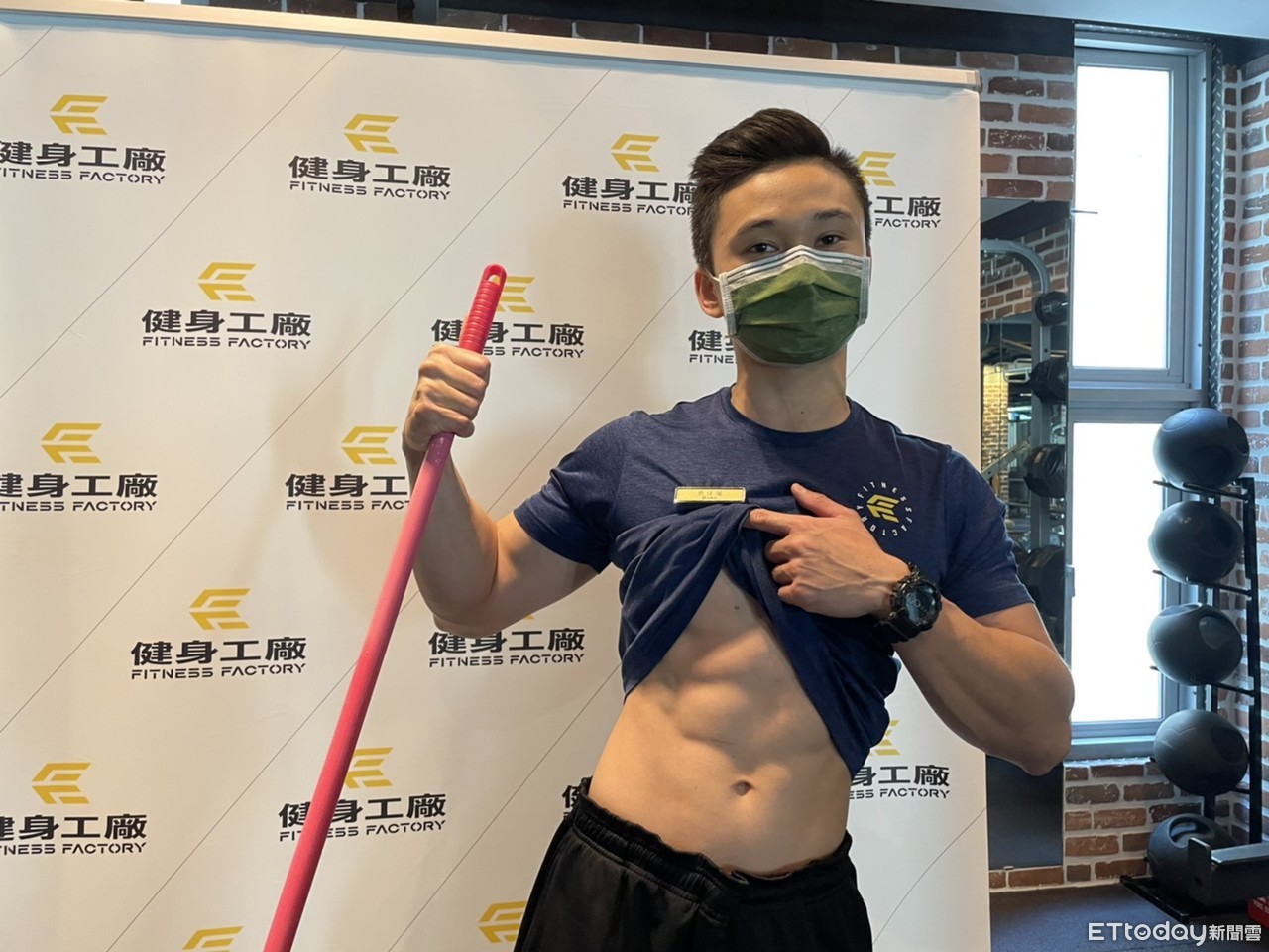 ▲過年大掃除造成全身痠痛,猛男教練Duke親自示範4招,用拖把桿就能舒緩腰酸背痛 。(圖/記者許宥孺攝)