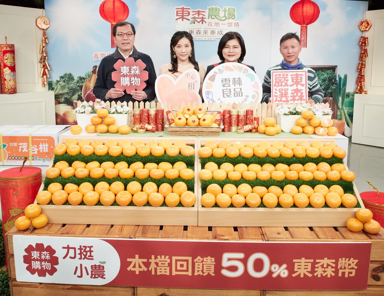 ▲有「大吉大利」寓意的橘子在農曆春節前後買氣特別好,雲林縣長張麗善(右2)、雲林縣政府農業處長吳芳銘(左1)與小農李翊煒(右1)特別帶來當地好品質的茂谷柑,和購物專家怡君(左2)在《東森農場》節目上分享給東森購物會員朋友。(圖/東森購物提供,以下同)