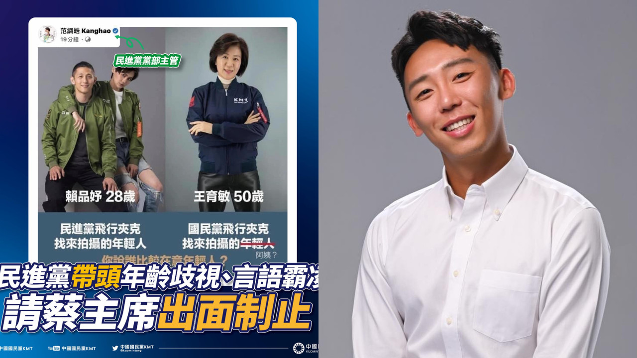 國民黨青年部推出飛行外套,遭到民進黨網路社群中心主任范綱皓諷刺模特兒找「已經50歲的王育敏」,因涉及年齡歧視引起撻伐。對此,民眾黨2日抨擊,民進黨拍照找年輕人,就代表在乎年輕人?
