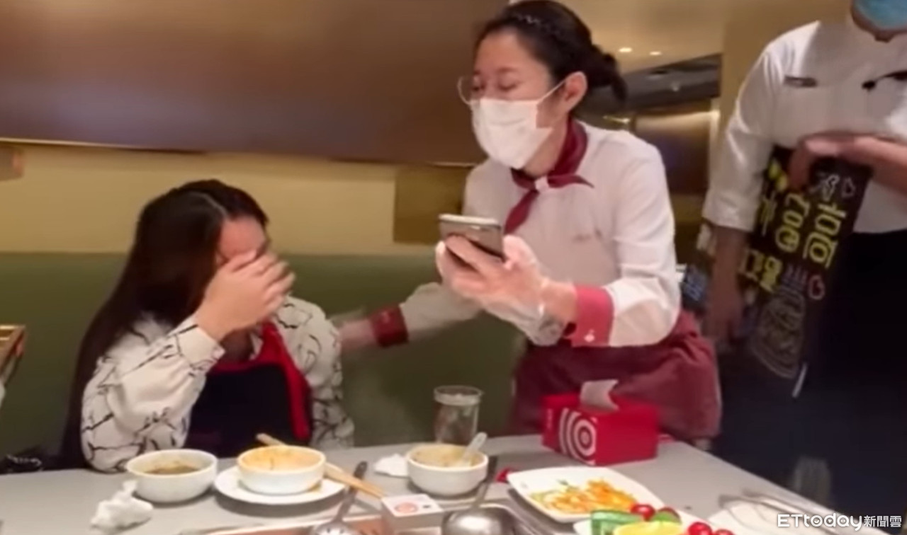 ▲海底撈店員大唱「分手快樂」,女客人秒炸淚!(圖/翻攝爆廢公社二館)