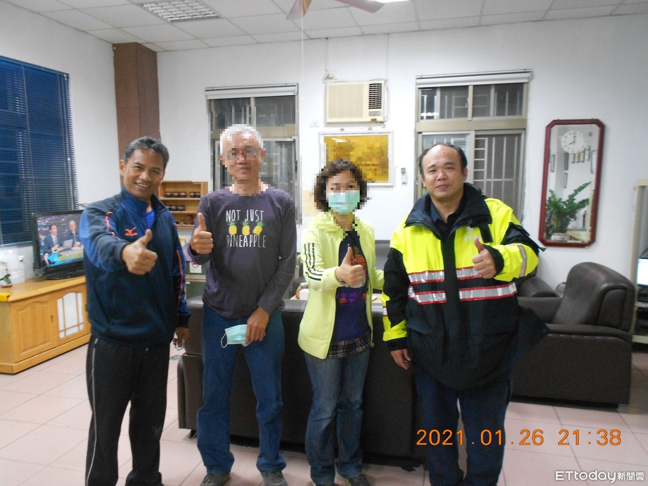 ▲郭姓夫婦比讚感謝警方。