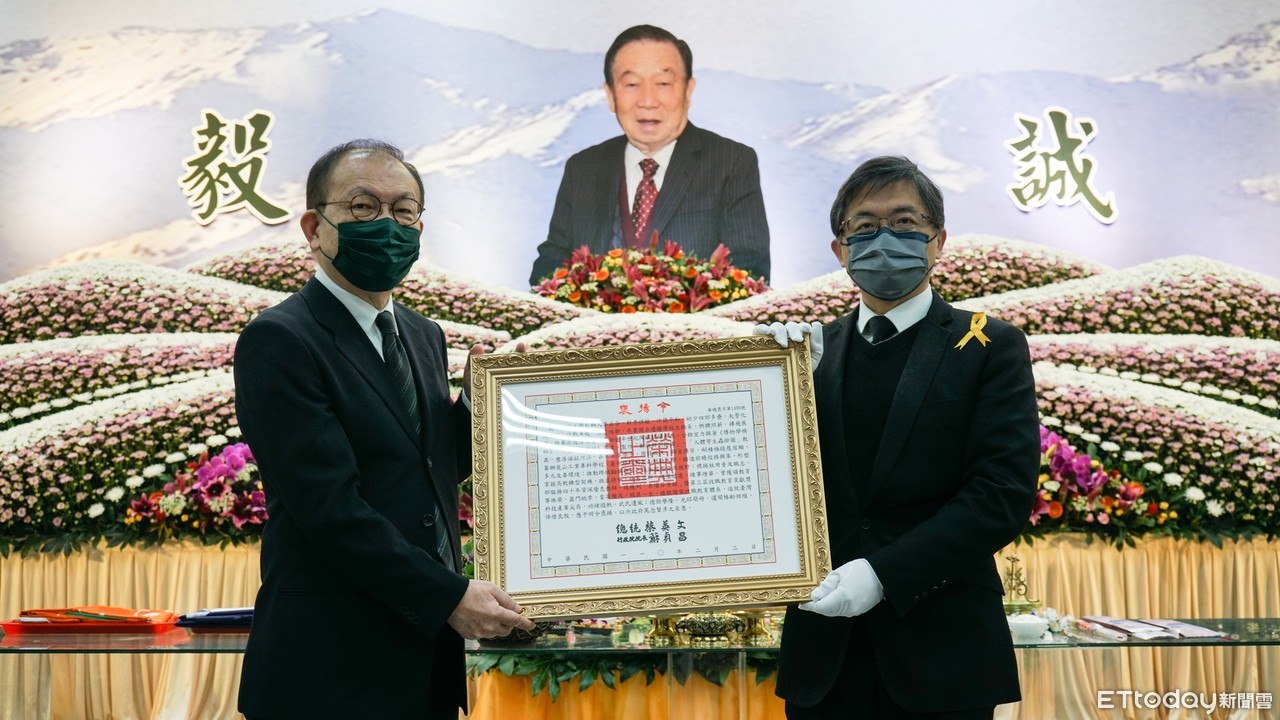▲崑山科技大學創辦人李正合,為台灣技職教育奉獻一生,3日告別式上,行政院秘書長李孟諺代表頒發總統府褒揚令,感念為台灣技職教育的付出。(圖/記者林悅翻攝,下同)