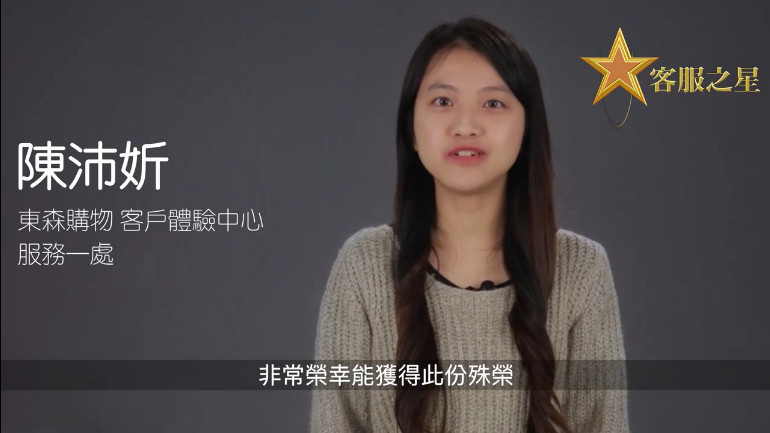 我是東森購物客戶體驗中心服務一處陳沛妡,主要負責訂購、售後服務,客訴處理。非常榮幸能獲得此份殊榮,除了受寵若驚外,也特別想感謝學長姐的傾囊相授,真的受益良多,以及長官與公司的肯定及栽培,讓我備受鼓舞。未來也會告訴自己保持初衷,持續用心努力提供更優質的服務,創造非凡價值。