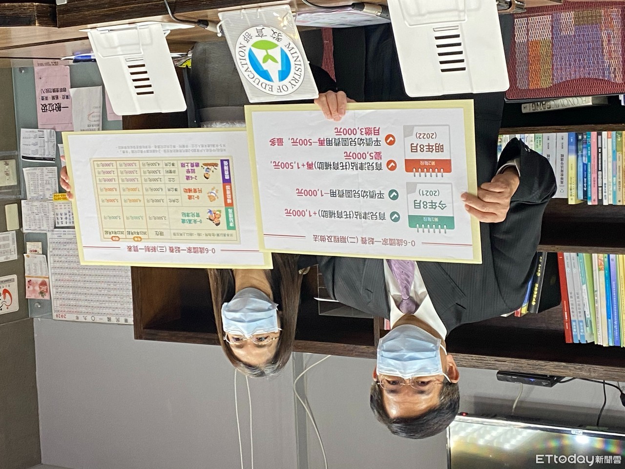 ▲教育部長潘文忠(左)說明育兒津貼。 (圖/記者崔至雲攝)