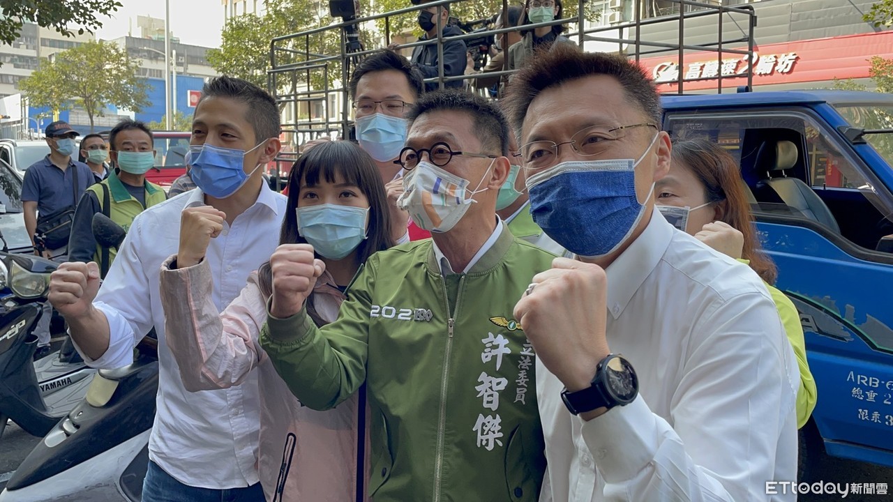 ▲民進黨黨籍立委、議員紛紛為黃捷站台 。(圖/記者洪靖宜攝)