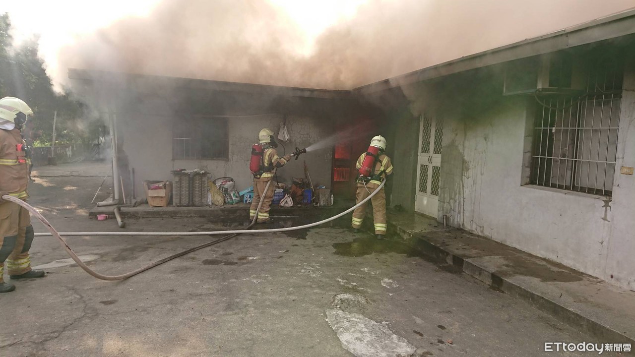 ▲台南市東山區林安里1處民宅,5日下午發生火警,台南市消防局出動消防人員前往搶水搶救,火勢迅撲滅,幸好無人員受困傷亡。(圖/記者林悅翻攝)