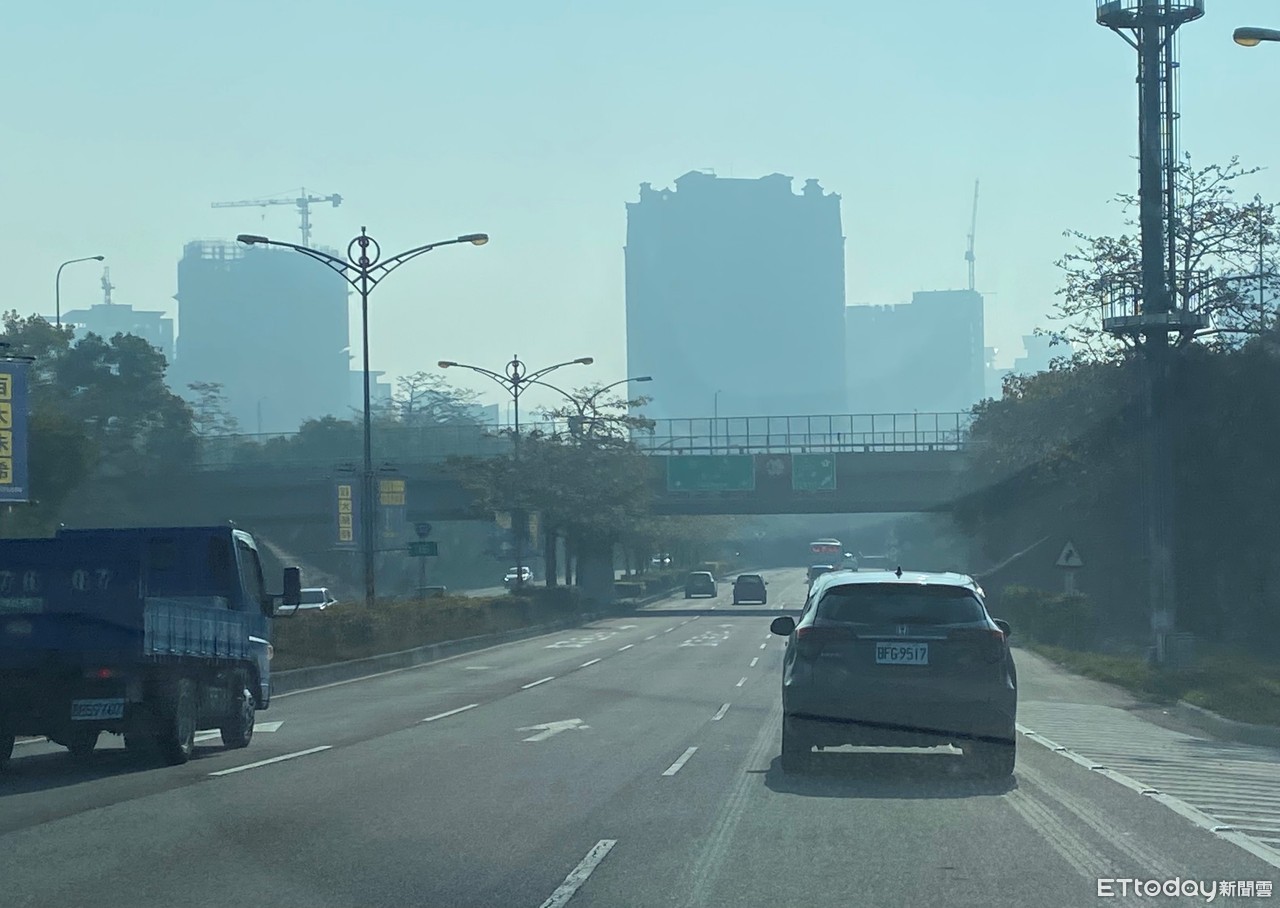 ▲台灣西半部空污嚴重,中市府開設應變中心因應。圖為台中市區上午狀況。(圖/記者李忠憲攝)