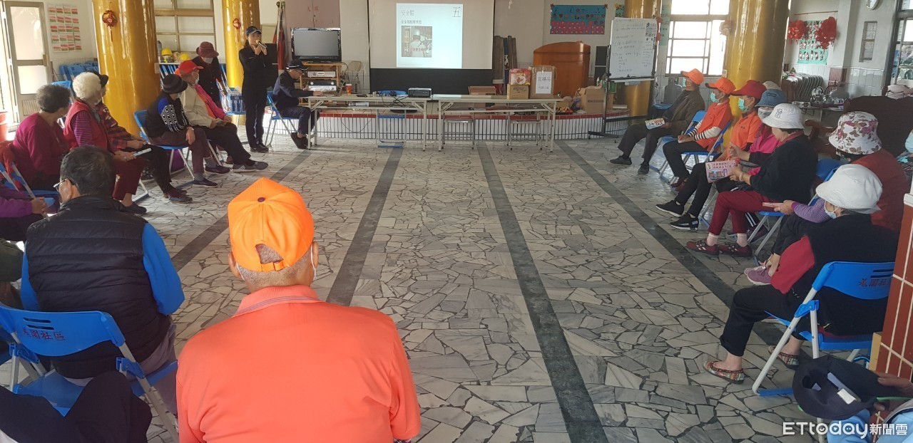 ▲枋寮警分局員警到佳冬鄉羌園社區關懷據點進行反詐騙、交安宣導 。(圖/記者陳崑福翻攝)