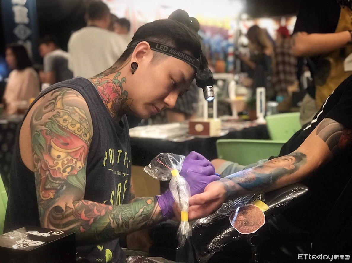 ▲陳漢武專注在刺青。(圖/記者黃彥傑攝)