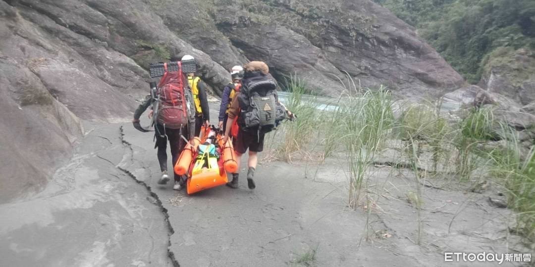 ▲救援人員以人力搬運、拖拉、水面漂浮等方式運送歷經2小時。(圖/花蓮消防局提供,下同)