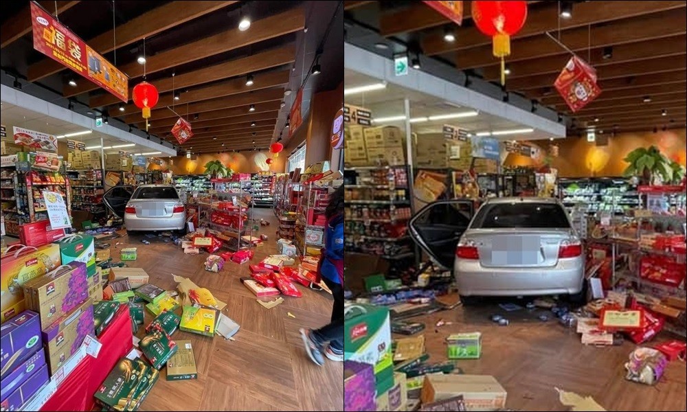 照片顯示,一輛銀色轎車斜停在全聯店裡,現場的禮品、商品及貨物散落一地,相當離譜。該間全聯事後也回應說,中午12點50分許,宋姓婦人本來要購物,緩慢駛進店前停車格時,疑似誤踩油門暴衝進店內,所幸店內僅1人輕微擦傷,並無大礙。全聯也強調會向駕駛求償。