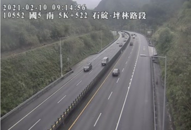 ▲北台灣上午有雨勢,國5南下路段路況。(圖/高公局即時路況)