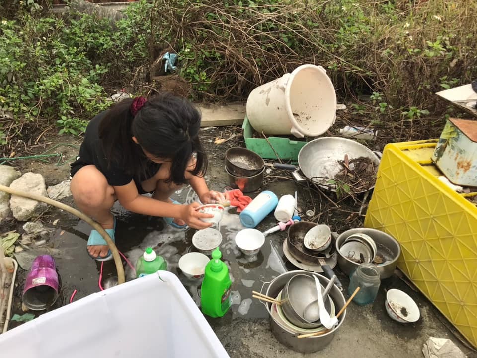 ▲小妹妹冬天還穿著短袖,在外面洗碗。(圖/翻攝自Facebook/羅紹和)