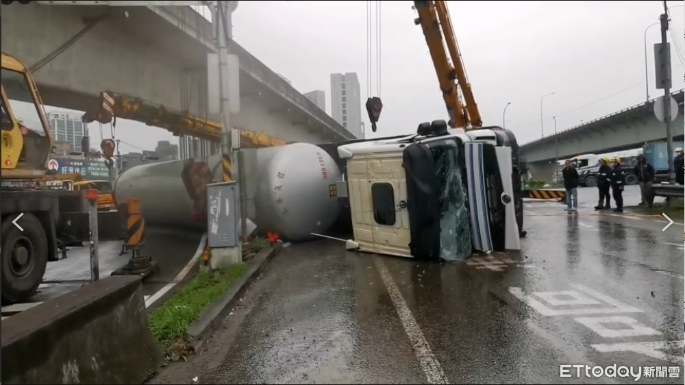 ▲桃園槽車翻覆。(圖/記者沈繼昌翻攝,下同)
