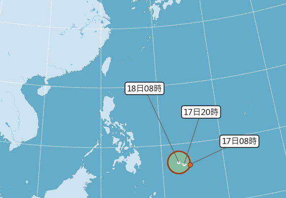 未來路徑方面,氣象局表示,會往菲律賓南部群島一帶移動,下周一、二進入南海,但路徑仍有很大不確定性,只是侵台可能性低,但下周二預估會間接帶來水氣,迎風面東半部有局部短暫雨。