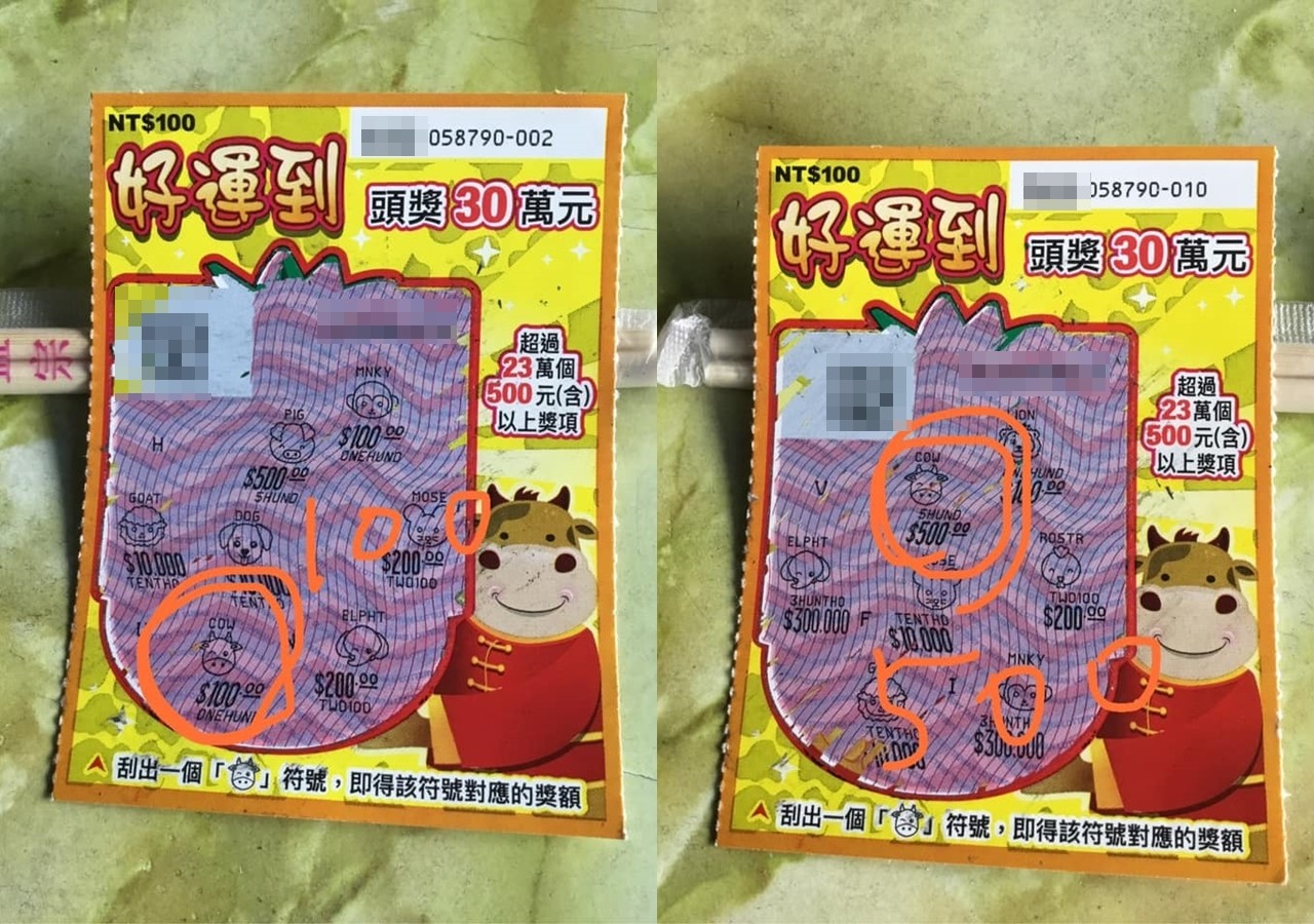 原PO指稱,她的母親16日晚間在台中太平某投注站,刮中了2張獎金分別是500元及100元的刮刮樂,經過反覆確認中獎後就拿到櫃檯要兌獎,不料店員僅用眼睛看了一下,就把中500元的刮刮樂丟進回收箱,然後告訴媽媽「你只中了100元。」