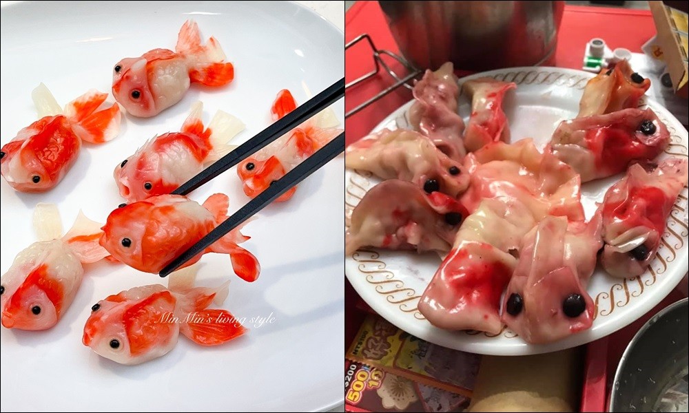 照片一出,其他人不禁噴笑,「要做惡夢了,別人的是捨不得吃,你的是不敢吃」、「中輻射的吧」、「血淋淋餃子」、「有點像……我每個月都會看到的衛生紙欸其實……」、「這是~紅衣小女孩番外篇嗎?魚肉好吃嗎」、「營養不良的金魚」、「人家包的是金魚,你包的是『驚』魚!」