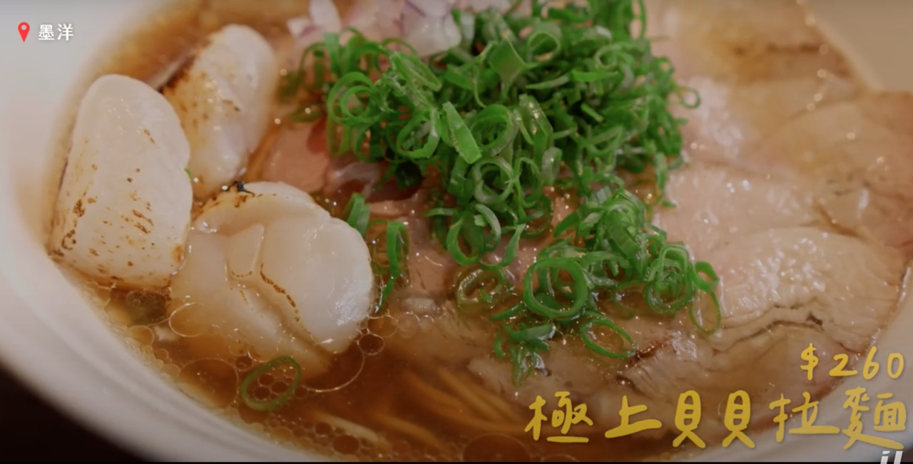 醬油拉麵是傳統的日式拉麵類型,主要以醬油的調味,來帶出高湯的風味,墨洋拉麵則是是使用多種貝類,搭配上清爽鮮甜的醬油所調製。網紅推薦極上貝貝拉麵、柚香貝出汁拉麵,前者內容不只有叉燒,還有炙燒干貝;後者湯底多了柚子的味道吃起來相當順口。