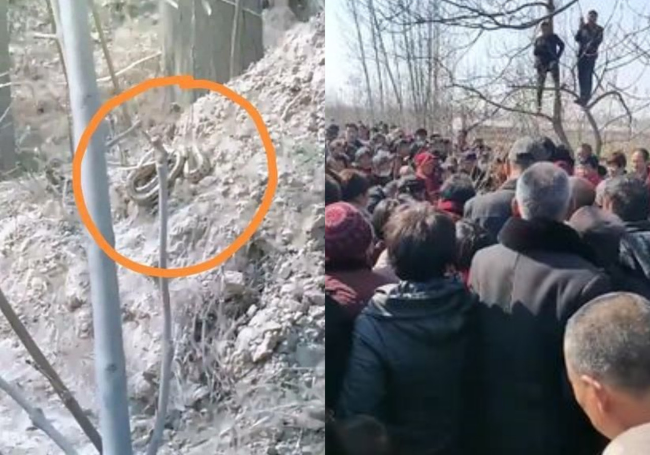 網上多個影片可見,現場人山人海,附近還有小攤販賣零食,如同新的市集;在大蛇出沒的地方還有一個告示牌,寫著「文明觀蛇,靠邊走,腳下留情」的字樣。
