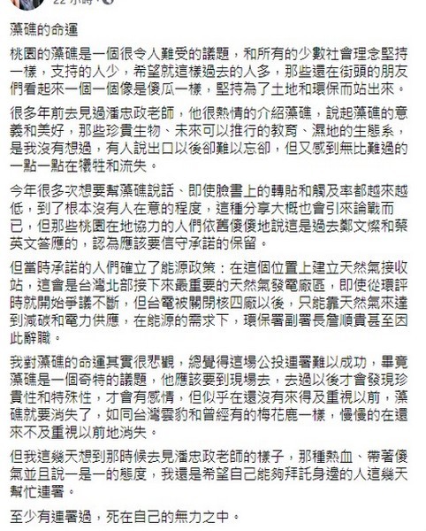 ▲參與連署網友發文對藻礁命運表示悲觀!(圖/翻攝臉書)