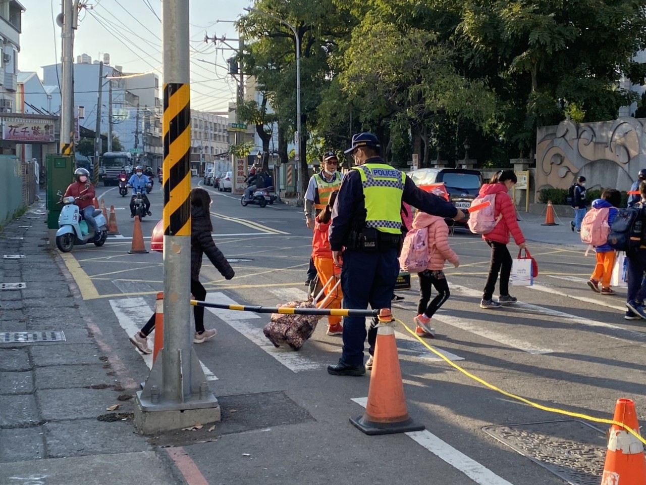 受到新型冠狀病毒疫情影響,中小學生開學日延到2月22日,今日開學第一天,高雄各轄區警分局為確保各校學童校園安全,全面啟動「護童專案」,除 了提供學童、家長即時且溫馨協助外,並與各校師長、導護人員保持密集聯繫,以確保學童上、下學安全。