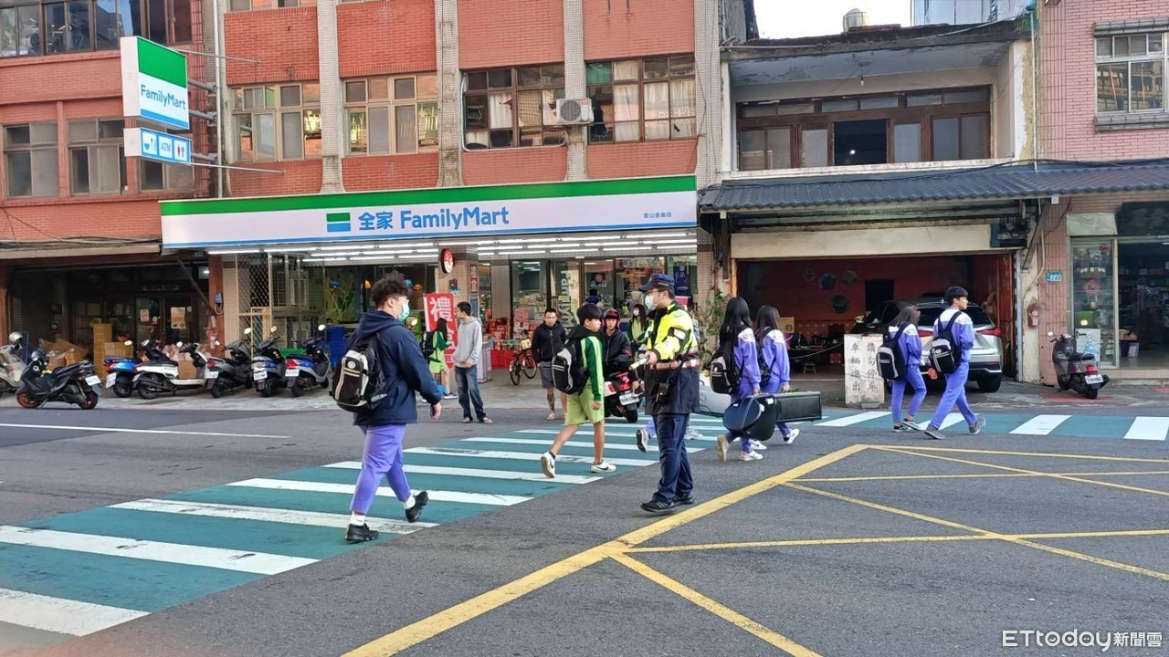 ▲金山警啟動護童勤務,副分局長林文隆親上陣守護學童安全。(圖/記者郭世賢翻攝,下同)