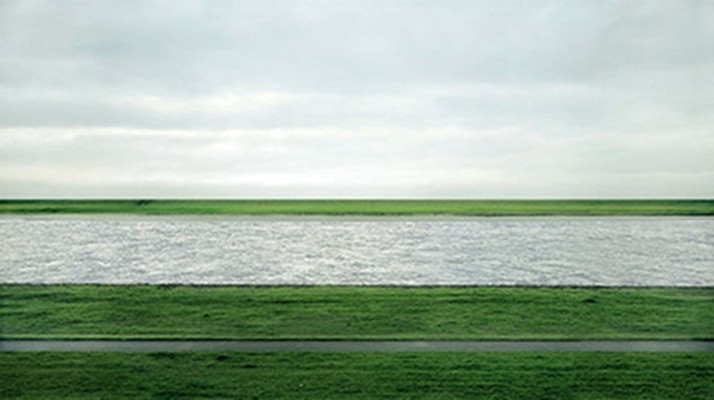 被萊茵河美景深深吸引的安德烈亞斯.古爾斯基,曾為萊茵河拍攝了6張照片,《萊茵河2號》是該系列中最大的一張,且原始照片中其實有著一座工廠、路人等,後來經由後製修掉,只留下萊茵河與河岸,畫面也形成了完美的水平結構。