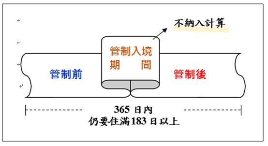 對此,內政部表示,為保障相關人士在台居住及身分權益,內政部於去年12月即邀集大陸委員會等相關機關共同研商,並於23日公告處理原則,管制入境期間不納入在台停(居)留及居住期間計算,管制前、後在台停(居)留期間視為連續不中斷,但扣除管制入境期間,管制前、後在台居住期間加總,每年仍須在台居住逾183天。